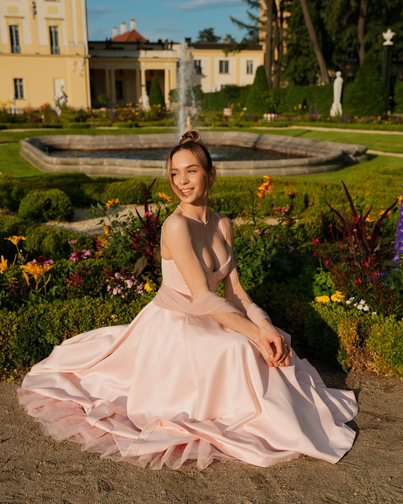 The bodice is made from duchess satin that’s smooth and silky to the touch for a